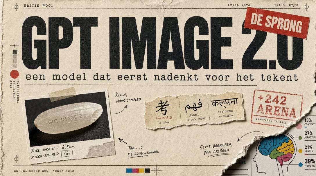 De grootste verandering zit onder al deze features. Twee jaar geleden was een AI-image delen iets wat je voor de lol deed op Twitter. Vandaag staat het in je werkproces. Thinking mode, multi-image coherentie en correcte tekst: dat zijn de drie dingen die beeldgeneratie van speeltje naar werkinstrument verplaatsen. Als jij nog geen enkel visueel proces in je bedrijf hier doorheen laat lopen, loop je vanaf nu achter. En zoals ik in workshops vaak zeg: je zit nog voorin de trein, maar de trein rijdt door.
