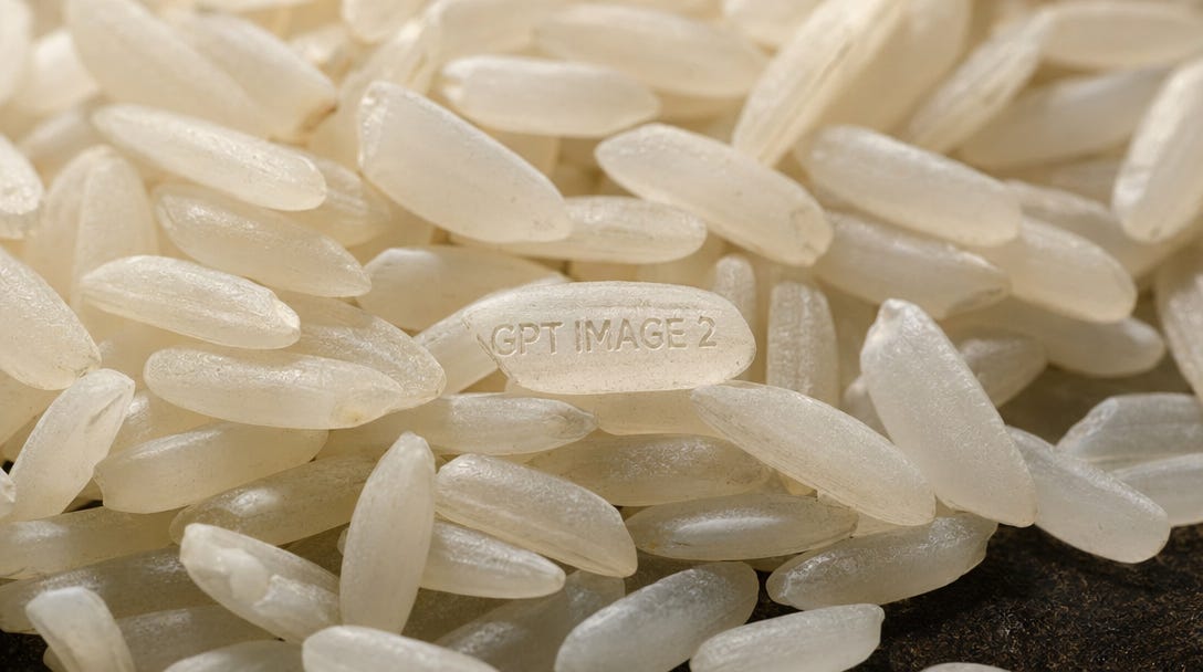 Eén demo zegt genoeg. OpenAI liet een foto zien van een berg rijst, duizenden korrels door elkaar. Op één van die korrels staat microscopisch klein “GPT Image 2” gegraveerd, leesbaar als je inzoomt. Het model tekende dat in één prompt. Geen 30 edits, geen Photoshop achteraf, geen upscaling-trucjes. Eén keer vragen, één keer afleveren.