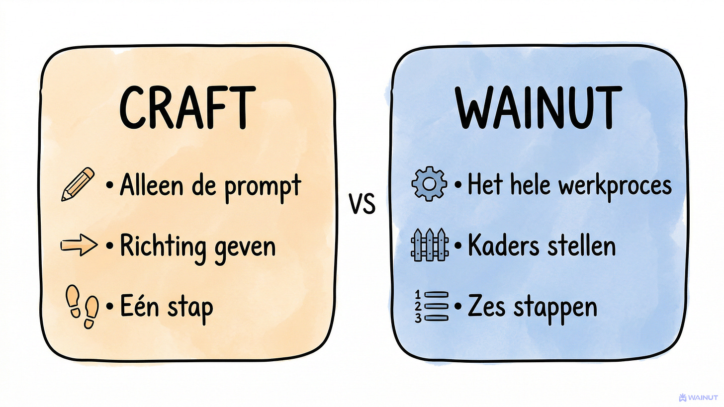 CRAFT leert je een goede prompt schrijven. WAINUT leert je goed werken met AI. Het verschil is groter dan je denkt.